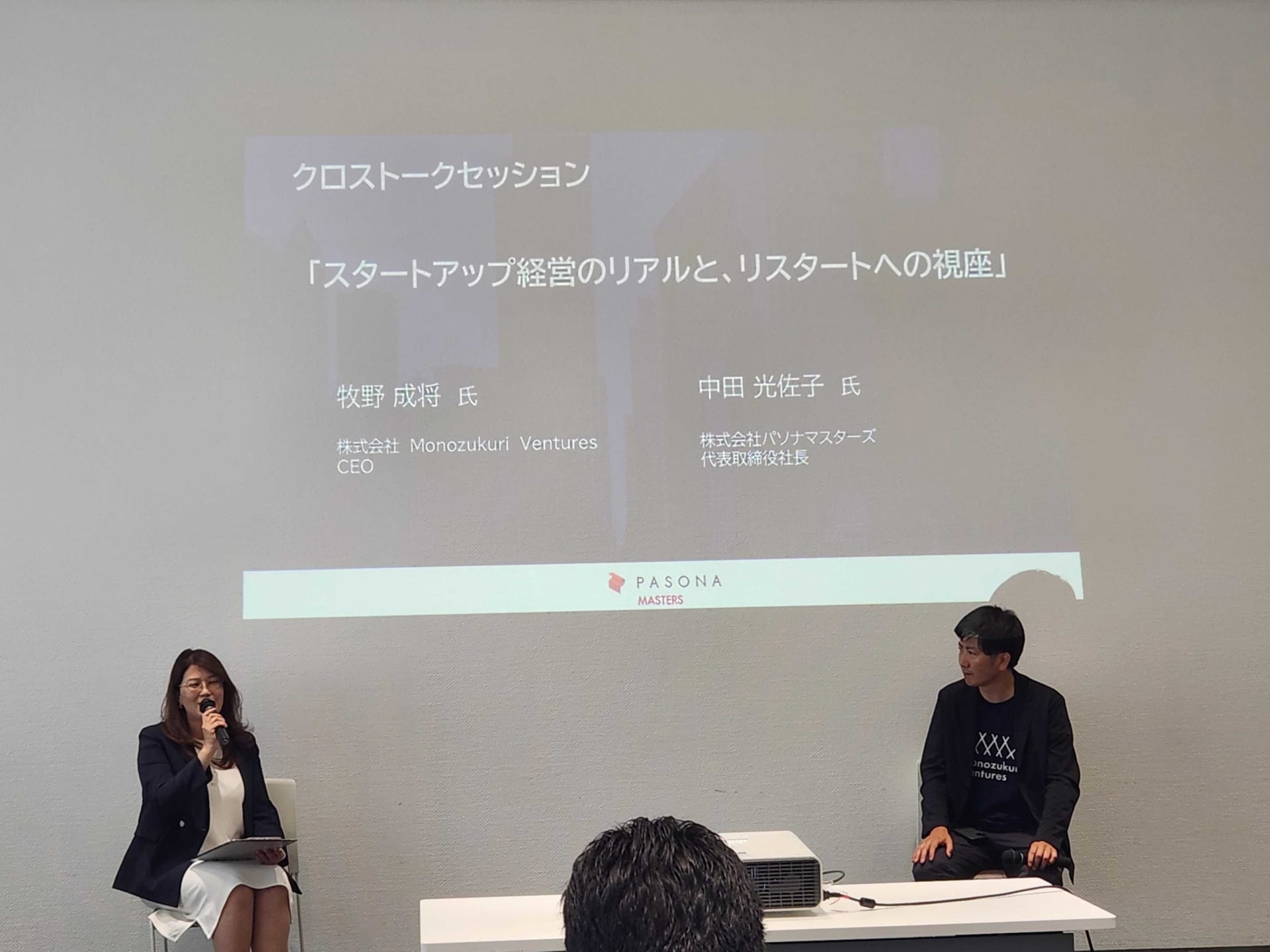 本セッションは、牧野成将(Monozukuri Ventures)と中田光佐子氏(パソナマスターズ)によるクロストーク形式で進行されました。