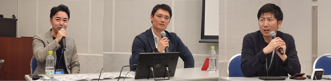 15:00から行われたパネルⅠでは、「製造業オープンイノベーションの未来」をテーマに、イマクリエイト代表取締役CEO 山本彰洋氏、パナソニック チーフ・トランスフォーメーション・オフィサー兼CVC推進室長 郷原邦男氏、ベンチャークライアント CEO 木村将之氏が登壇し、MZV執行役員でオープンイノベーションを担当する横溝がモデレーターを務めました。